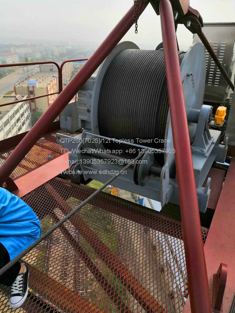 The Hongda QTP250 (7025) tower crane adopts internal rotation, which reduces the footprint, facilitates maintenance, and has good rotation stability.