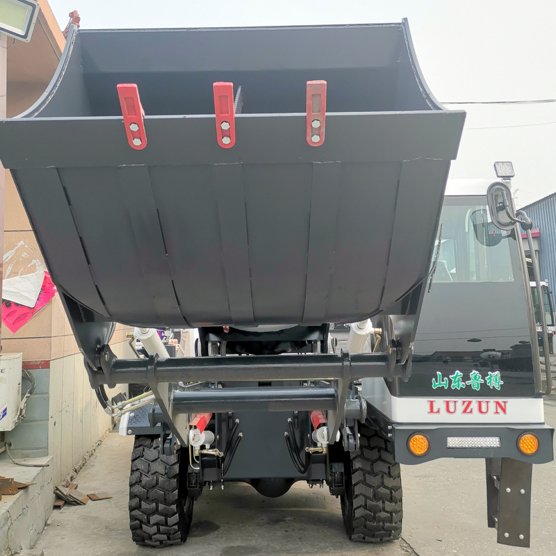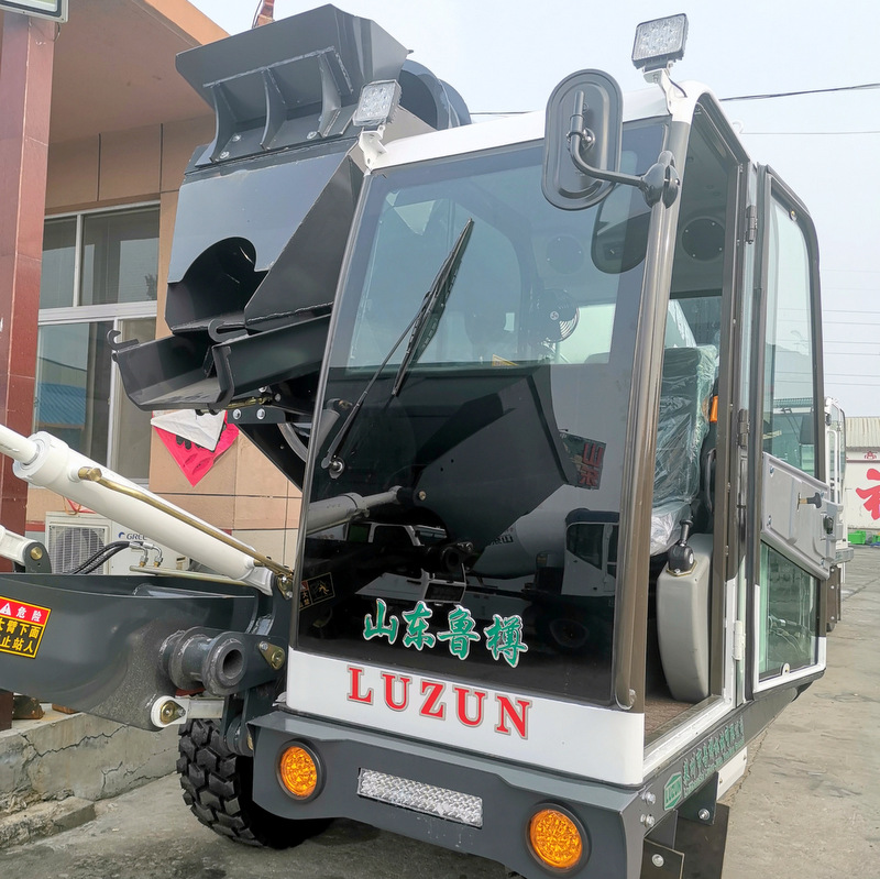 Auto weighting function, Loading device with Teeth bucket and lifting arms controlled by double-acting hydraulic cylinders Automatic unloading hatch driven by a mechanical lever
